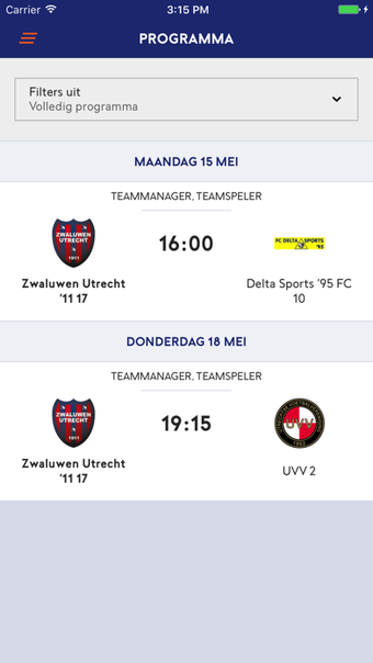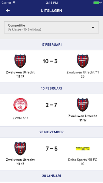 Voor wedstrijdzaken is iOS 12.1.2 en hoger vereist. De huidige versie van het programma is 5.9.0, en je kunt het alleen in het Nederlands krijgen.